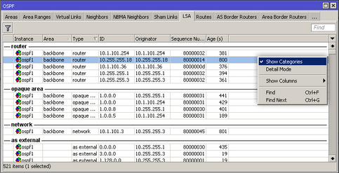 Winbox umožňuje přizpůsobit zobrazované sloupce pro každé jednotlivé okno. Například přidat sloupec BGP AS path: